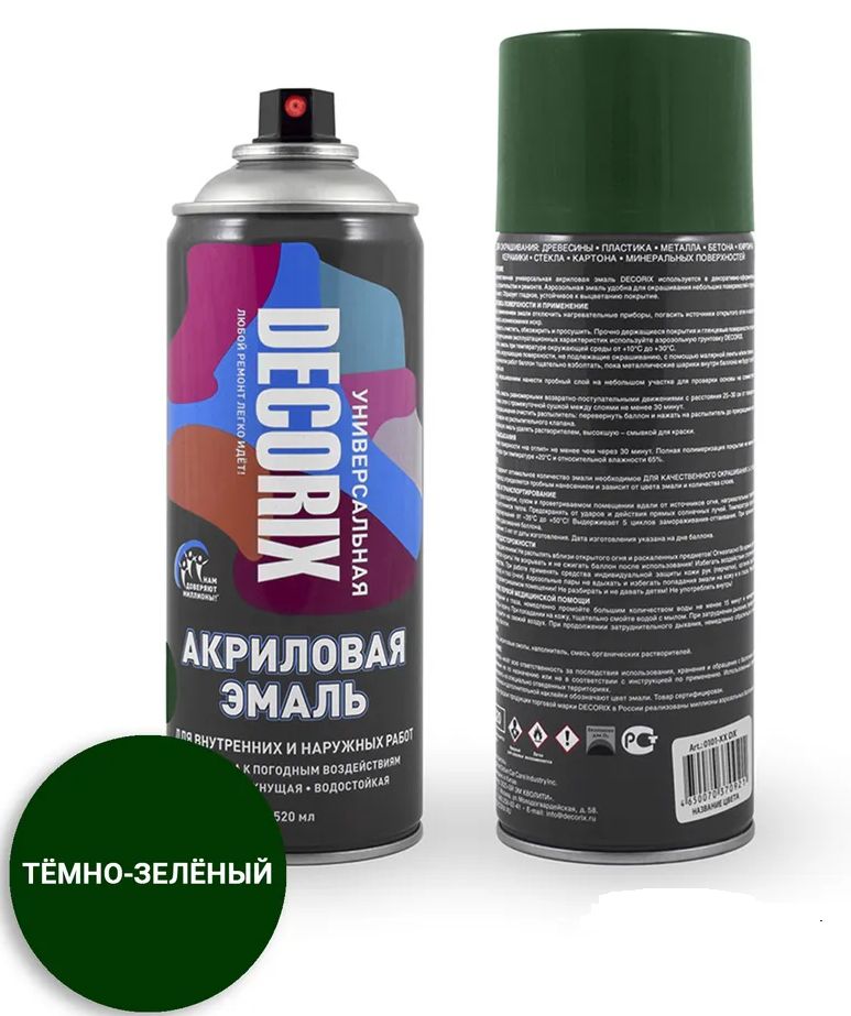 Краска Аэрозоль зеленая темная 520мл DECORIX
