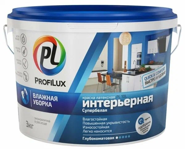 Краска ВД «Профилюкс» PL10 латексная влагостойкая бел 14кг