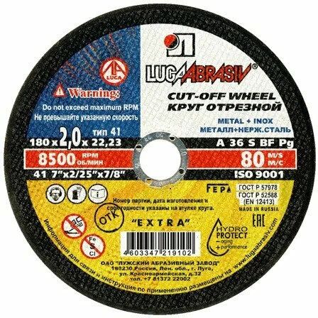Круг отрезной по металлу 180х2,0х22мм Луга