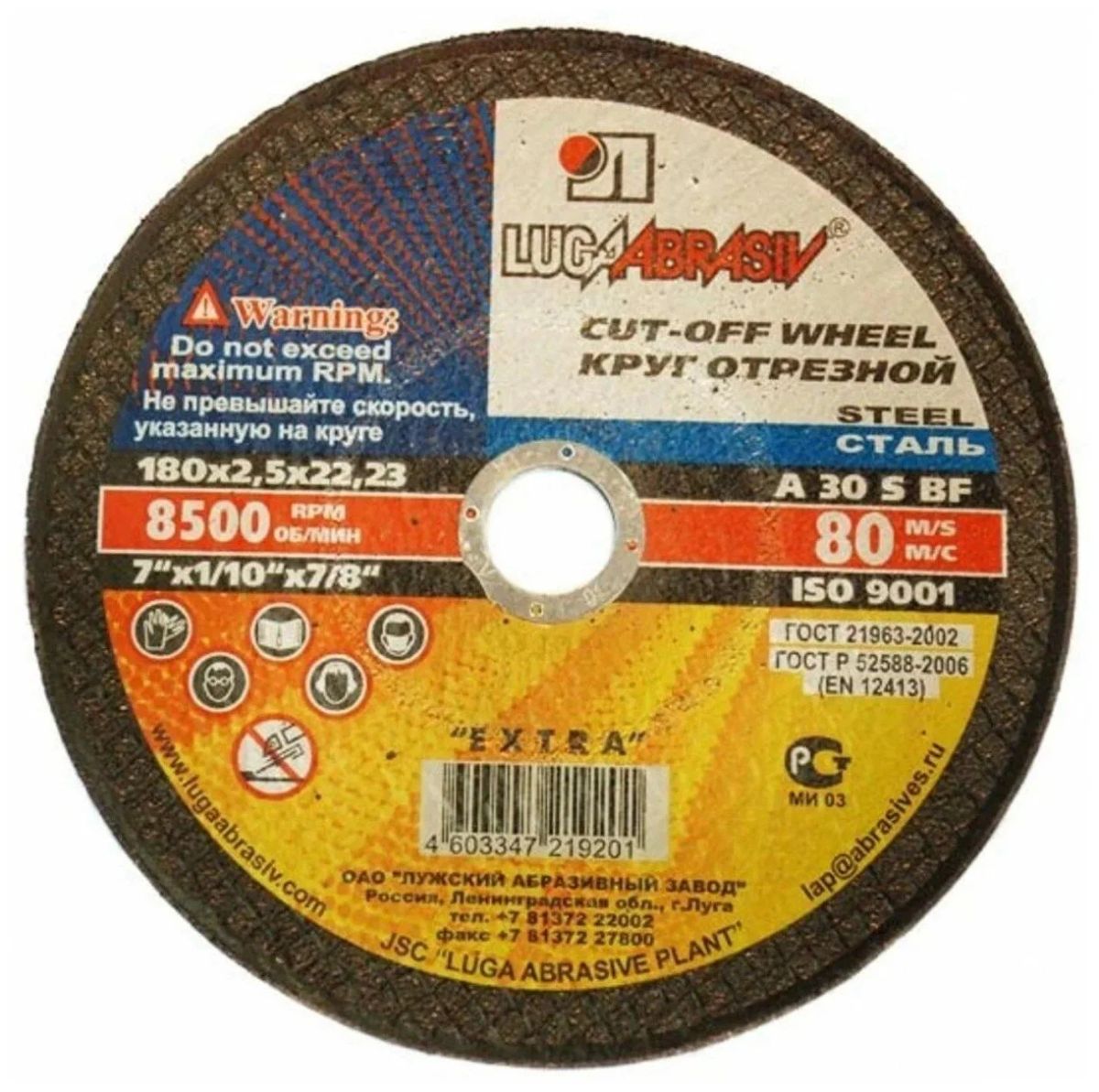 Круг отрезной по металлу 180х2,5х22мм Луга