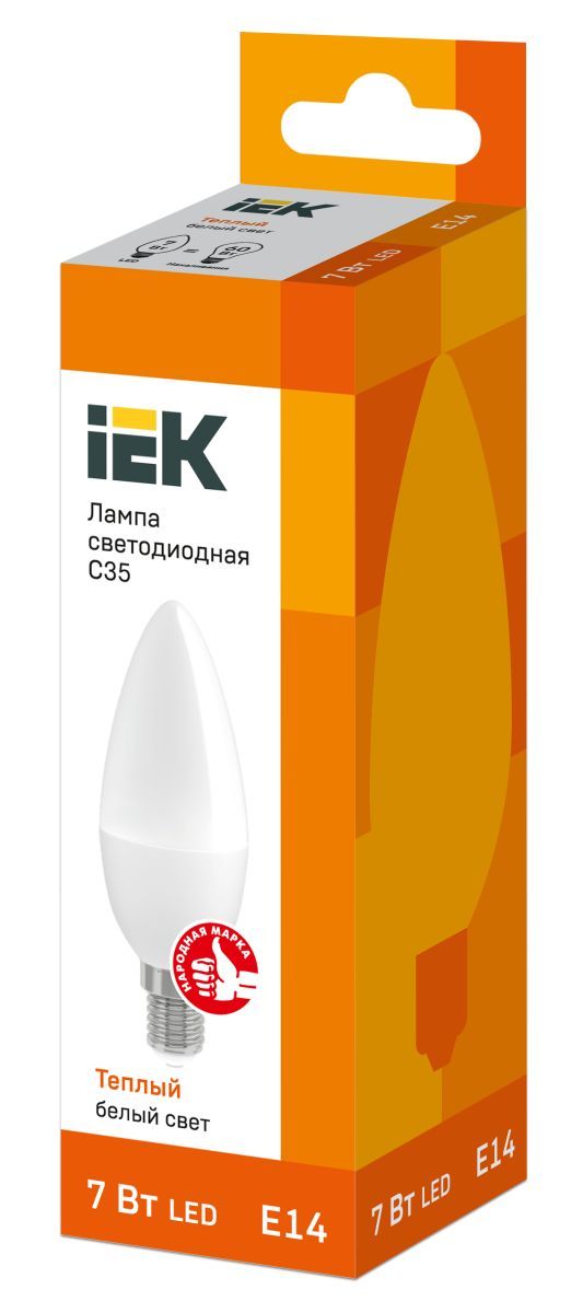 Лампа светодиодная ECO C35 7Вт свеча 3000К E14 230В IEK