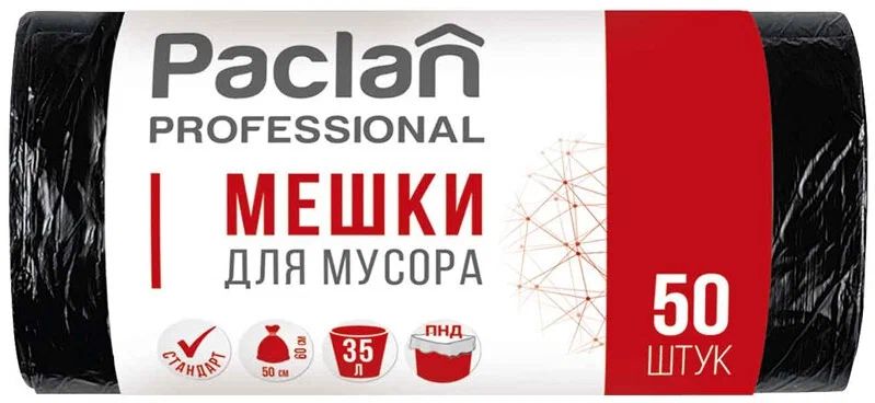 Мешки для мусора 35л 50шт 6,2мкм Paclan PROFESSIONAL BLAK