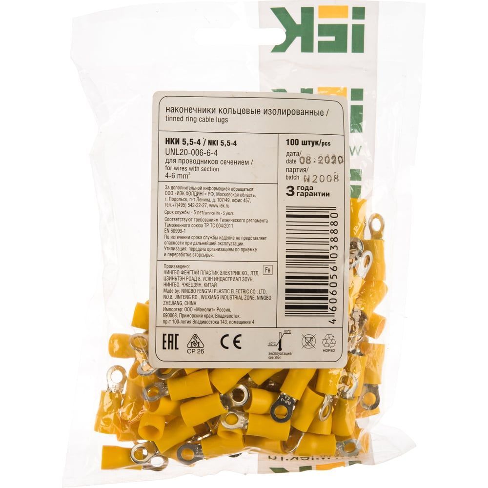 Наконечник НКИ 5.5-4 (кольцо 4-6) (уп.100шт) IEK