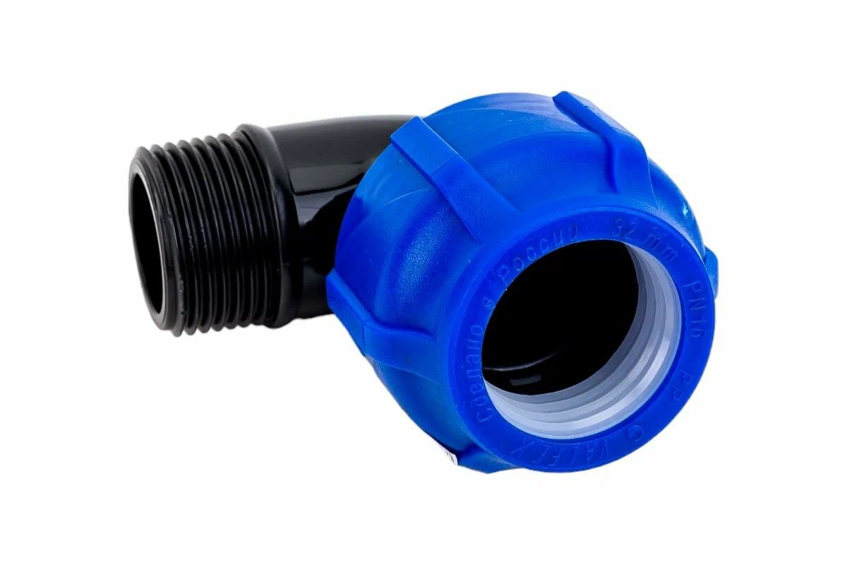 Отвод ПЭ компресс Дн20х3/4"х90гр НР Ру16