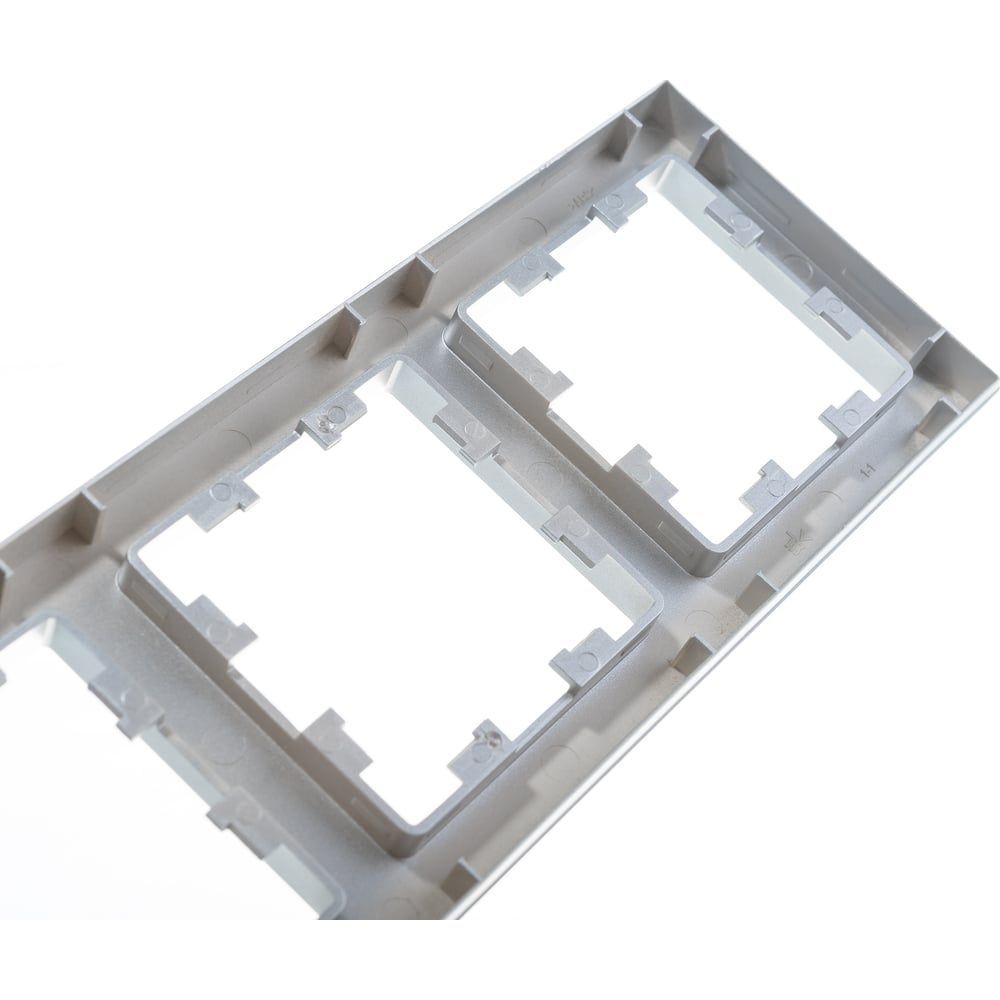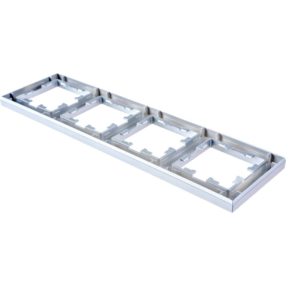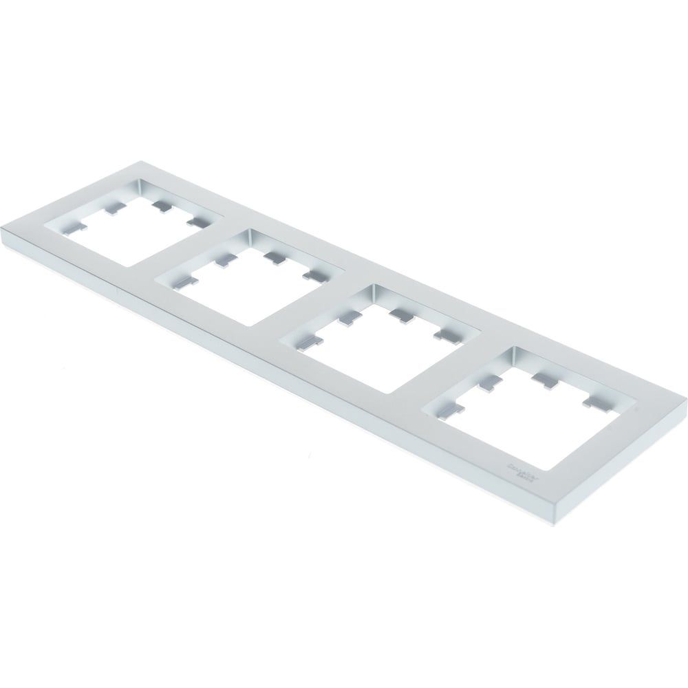 Рамка Systeme Electric (ранее Schneider Electric) серии AtlasDesign в цвете алюминий четырёхместная. - Устанавливается в вертикальном и горизонтальном положениях. - Лицевые детали из качественного ABS-пластика, устойчивого к царапинам и УФ-излучению. - Позволяет гармонично вписать электроустановочное изделие в интерьер помещения.