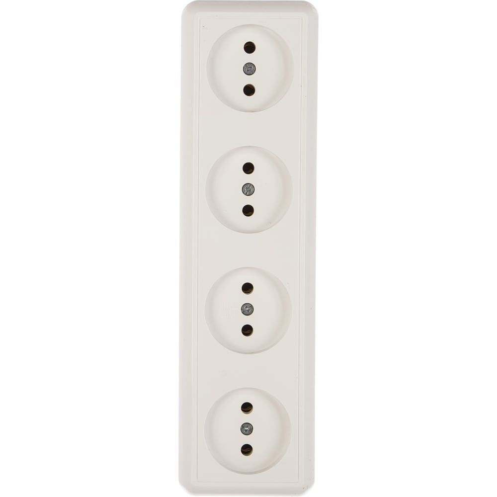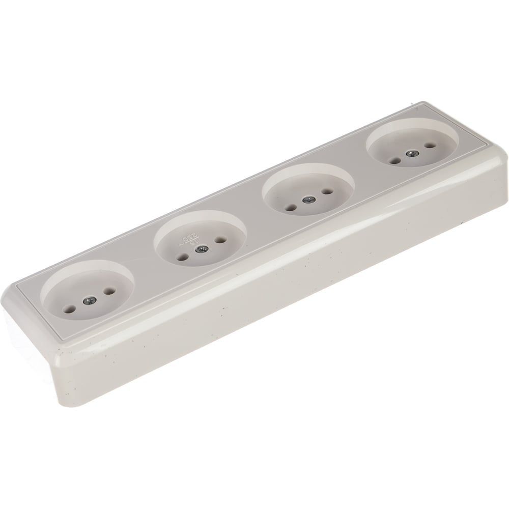 Розетка открытой установки четырехместная, 16А РА16-402, белая ОПТИМА