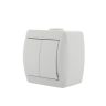 • НАЗНАЧЕНИЕ Выключатель 2-клавишный это двухпозиционный коммутационный аппарат с замыкающими (нормально-разомкнутыми) контактами, предназначенный для работы в сетях с напряжением до 1000 вольт, не предназначенный для отключения токов короткого замыкания, без специальных устройств дугогашения, местного управления, с ручным приводом. • ОБЛАСТЬ ПРИМЕНЕНИЯ В основном применяются для включения и выключения освещения в бытовых и производственных условиях. • ПРИНЦИП ДЕЙСТВИЯ Принцип действия основан на коммутации контактов механическим способом (нажатием) , при этом положения коммутации фиксированы и позволяют находится в этом режиме достаточно долго, вплоть до следующего воздействия. • ДОПОЛНИТЕЛЬНЫЕ ПРИНАДЛЕЖНОСТИ ИЛИ АКСЕССУАРЫ